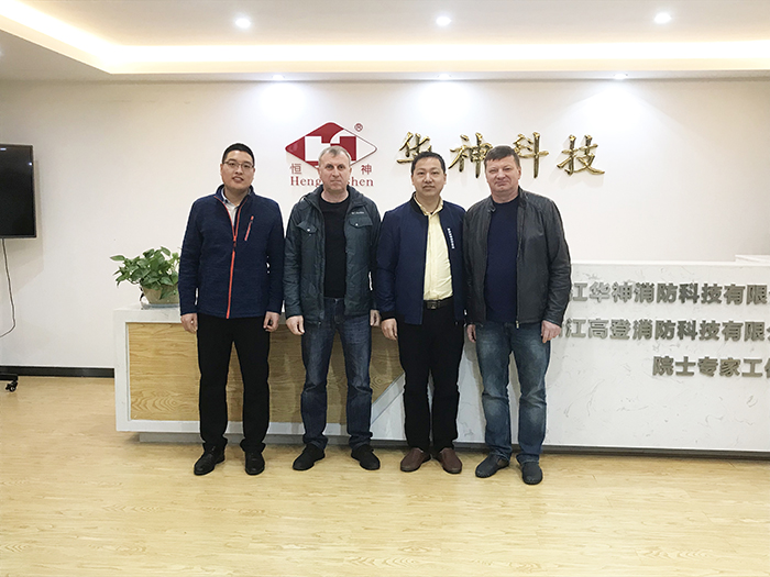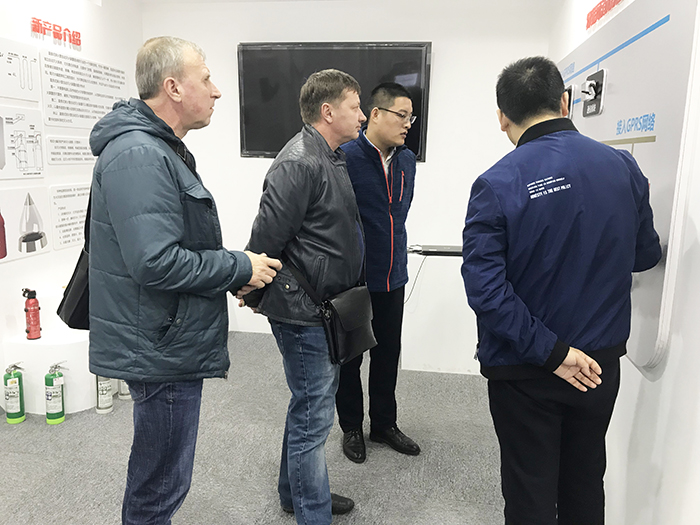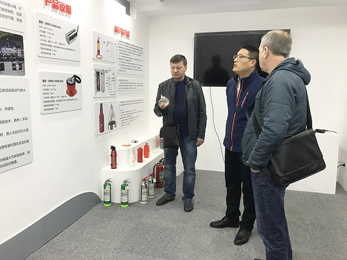 華神消防在不斷開拓和鞏固國內市場的基礎上,積極拓展海外市場。2018年3月12日,來自烏克蘭的三位客戶來到我公司進行參觀考察??腿嗽?/span>副總周斌和銷售經理陪同下,參觀了華神消防展廳,并現(xiàn)場觀看了熱氣溶膠防護裝置的繞障及復燃實驗,國外客戶在全方位了解公司的規(guī)模實力、研發(fā)實力及詳細的產品介紹后,高度贊揚了華神氣溶膠類產品和新產品逃生瓶的可靠性及質量等,對華神的產品產生較大的興趣并期望與公司長期合作。